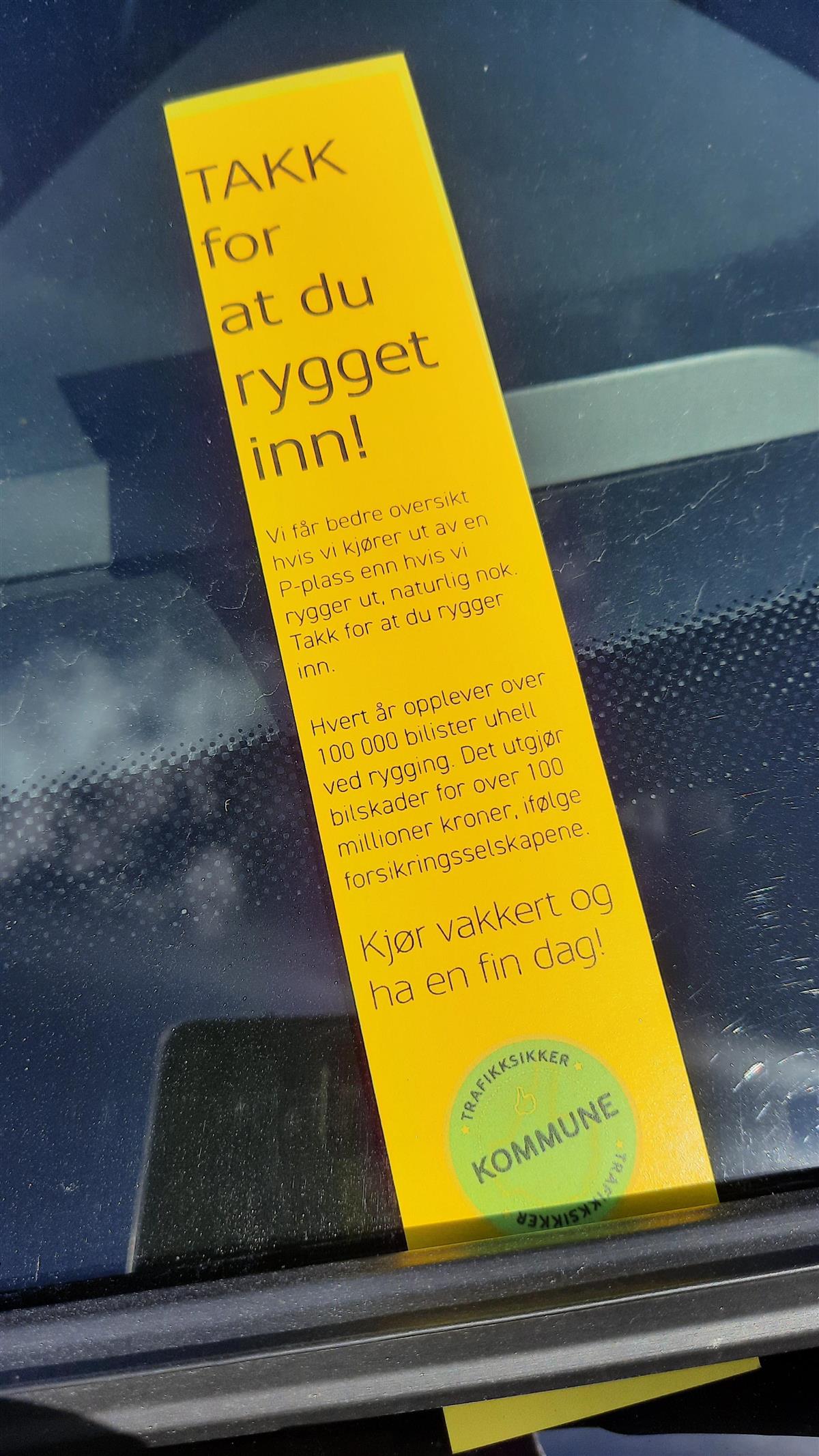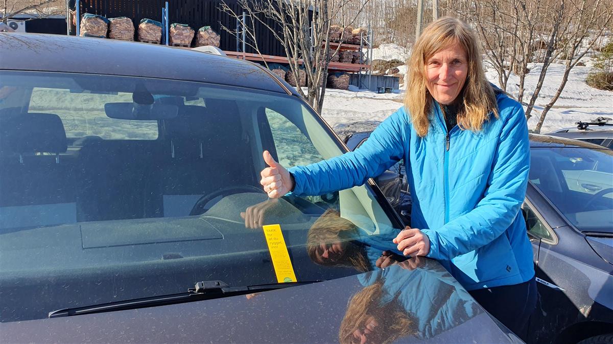 Kommunalsjef Oppvekst og kultur Inger Randi Islandsmoen Kleven er en av de heldige som har fått en "parkeringsbot" med hyggelig hilsen og takk for at hun rygget inn da hun parkerte.