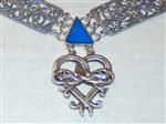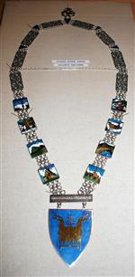 På ryggen er den hjerteformede Valdres-logoen med dragehodene. Dette er den nye logoen for regionen Valdres, utført i sølv. Dragemotivene er hentet fra stavkirkene i kommunen. Selve motivet er å gjenfinne på inngangen til Hedalen stavkirke. De rektangulære leddene med mellomledd er laget i sølv filigran i tradisjonell stil, noe som understreker at sølvsmedkunsten har hatt en plass i Sør-Aurdal.